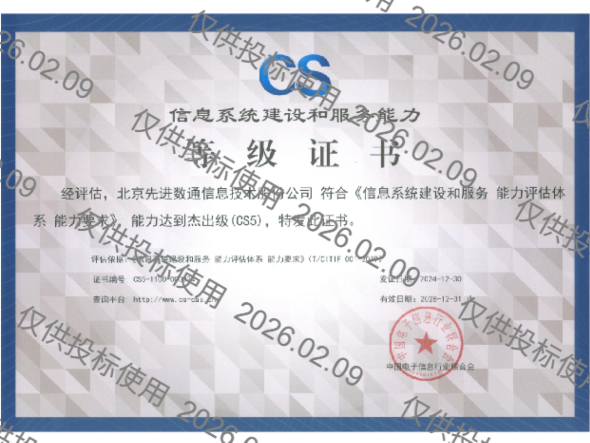 龙8国际官网先后取得CMMIL5、软件能力成熟度五级(SPCA 5)、信息系统建设和服务能力评估体系(CS)5级、ITSS成熟度一级、信息系统安全集成服务资质二级、信息系统安全运维服务资质二级、国产化信息系统集成和服务能力评估四级(LS4)、北京市企业技术中心等资质认证,并取得ISO9001、ISO20000、ISO27001、ISO14001、ISO45001、ISO22301、ISO37001、ISO28001、GBT29490等标准体系认证,具备行业领先的技术开发、工程实施及服务保障能力。